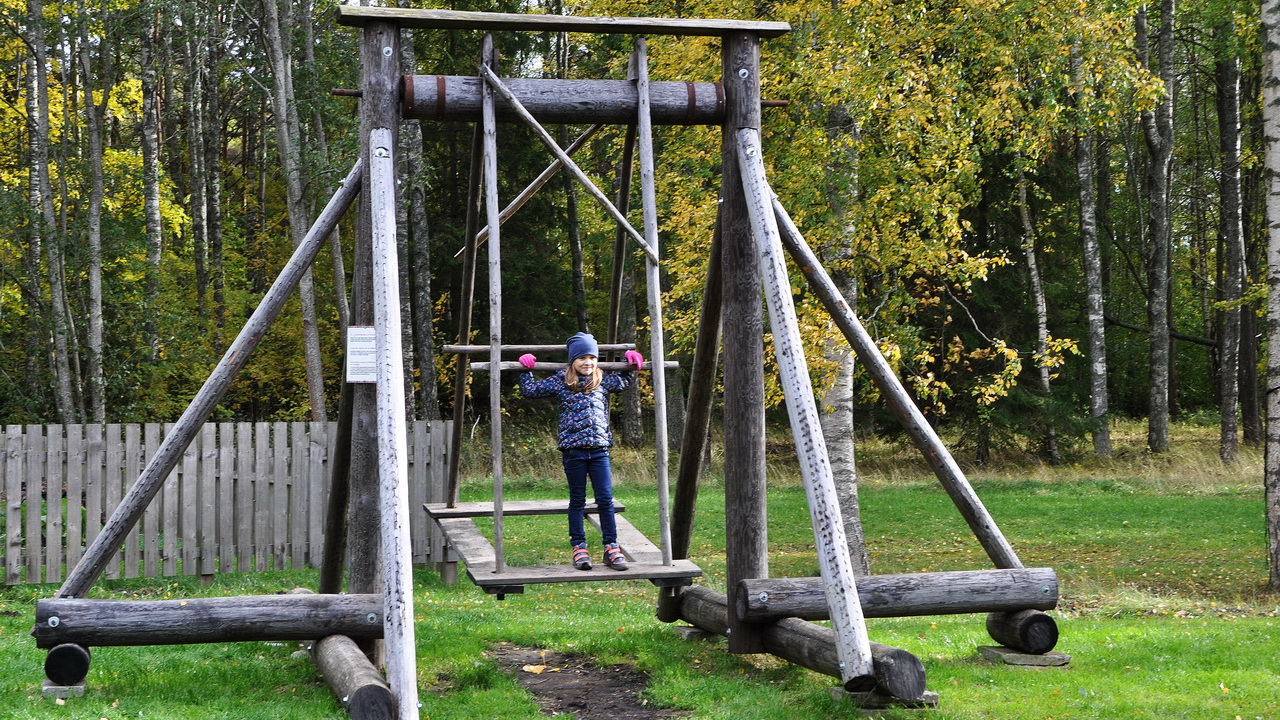 Порадовали действующие деревянные качели, коих несколько на территории музея.